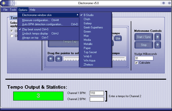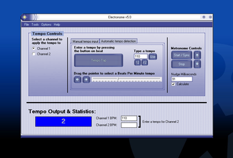 Los dos métodos que Electronome usa para medir las pulsaciones de la música son muy distintos. El primero consiste en hacer clic sobre el botón Tempo Tap siguiendo el ritmo de lo que escuchas. El otro es automático, y analiza el audio que llega a través de la tarjeta de sonido.